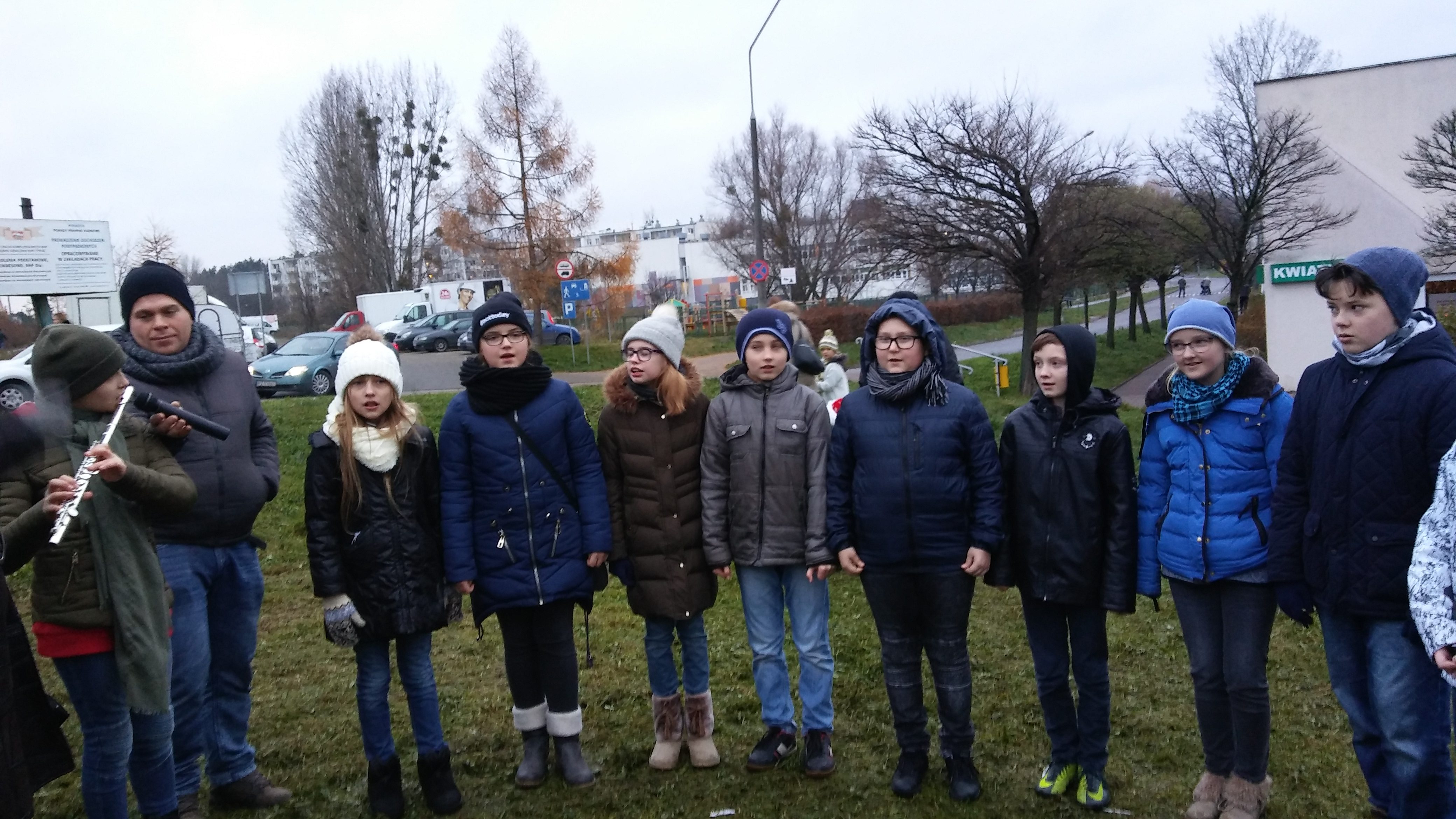 9 grudnia w godzinach 14.00 – 16.00 przy ulicy Łużyckiej, na wysokości NETTO, z inicjatywy Radnych z Rady Osiedla Naramowice, odbyło się pierwsze spotkanie społeczności lokalnej przy choince. Wszyscy przybyli mogli zakupić obrazy pana Stanisława Rakowskiego, czy nabyć na straganach piękne stroiki i prawdziwy miód. O przygotowanie ozdób na piękną choinkę poproszone były placówki oświatowe z rejonu Naramowic. Nasza szkoła przygotowała krótki występ artystyczny- zaśpiewano kolędy przy akompaniamencie fletu.