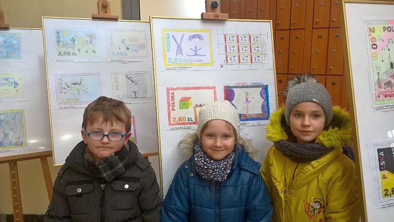 Odebranie nagród w dniu 31.01. 2018r. w konkursie na projekt znaczka pocztowego pt. „Moje hobby, moje zainteresowania”. Amelia Zwierżdżyńska zdobyła 1 miejsce, wyróżnienia: Matylda Woźnicka i Mateusz Śron.