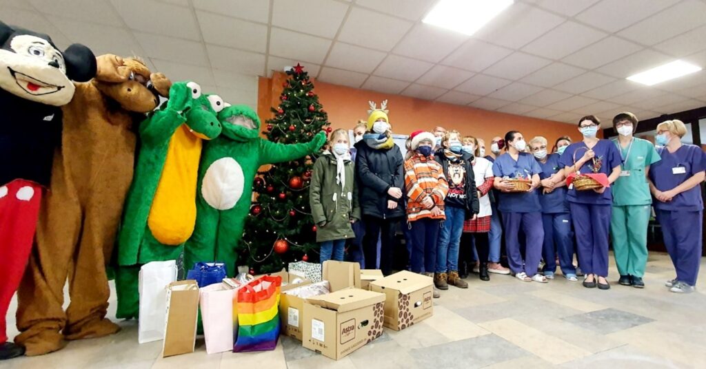 22 grudnia delegacja klasy, rodzice i pani Adrianna wręczyły prezenty pielęgniarkom w holu szpitala.
