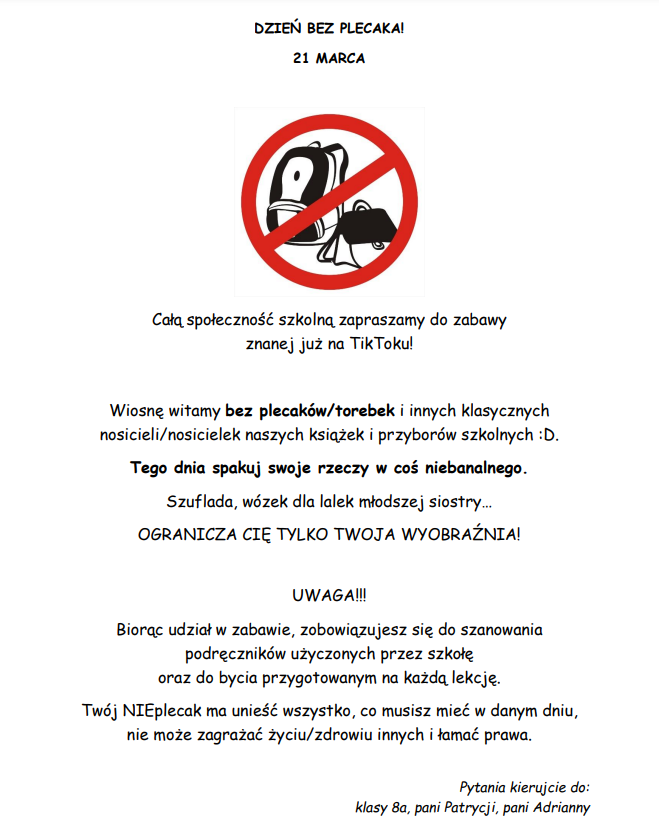 DZIEŃ BEZ PLECAKA!