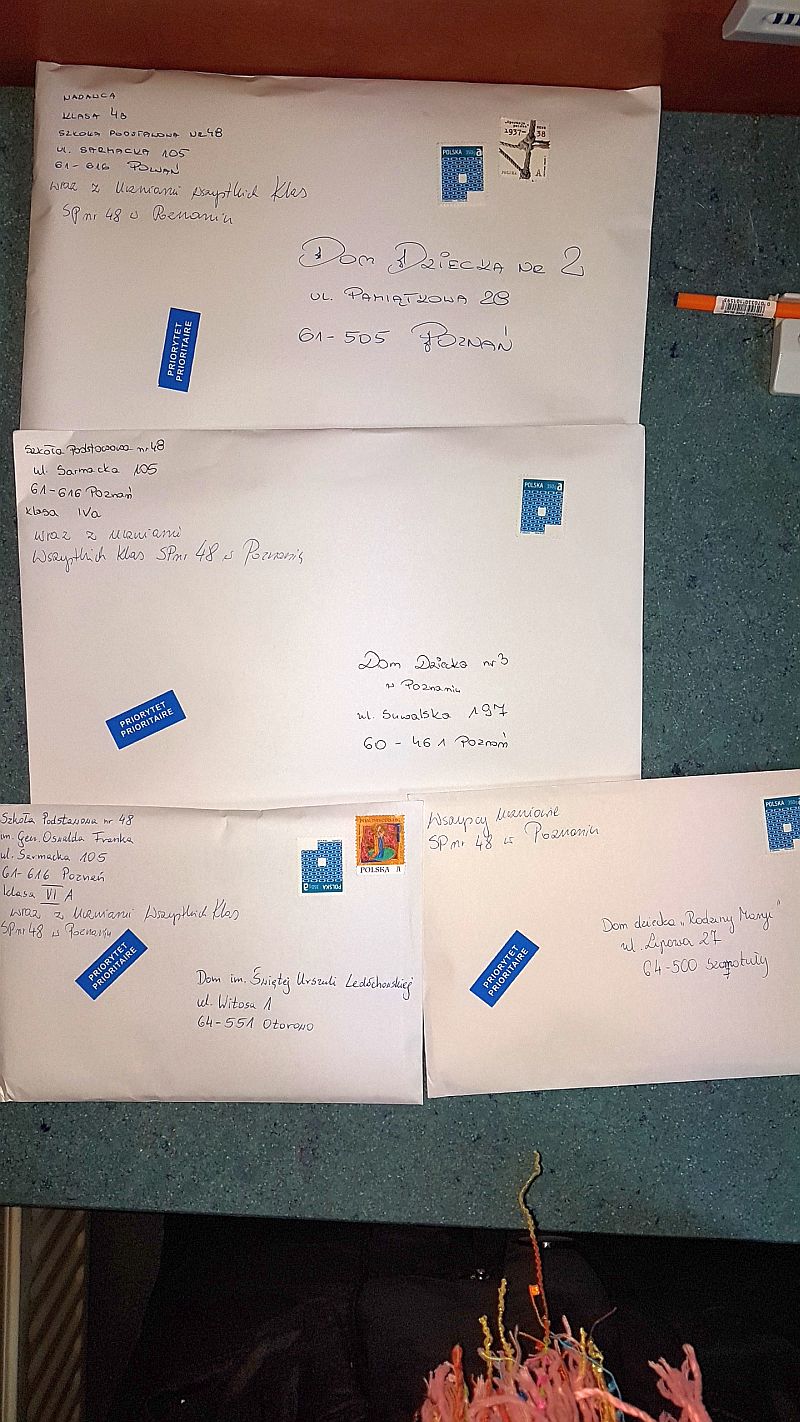 Dzieci wykonały m.in. ogromną ilość kartek świątecznych. Nie wszystkie udało się sprzedać….na tych kartkach, które zostały Dzieci wpisały życzenia świąteczne i w dniu dzisiejszym zostały one wysłany do regionalnych Domów Dziecka. Wszystkim zaangażowanym serdeczne podziękowania. Zapraszamy do obejrzenia zdjęć.
