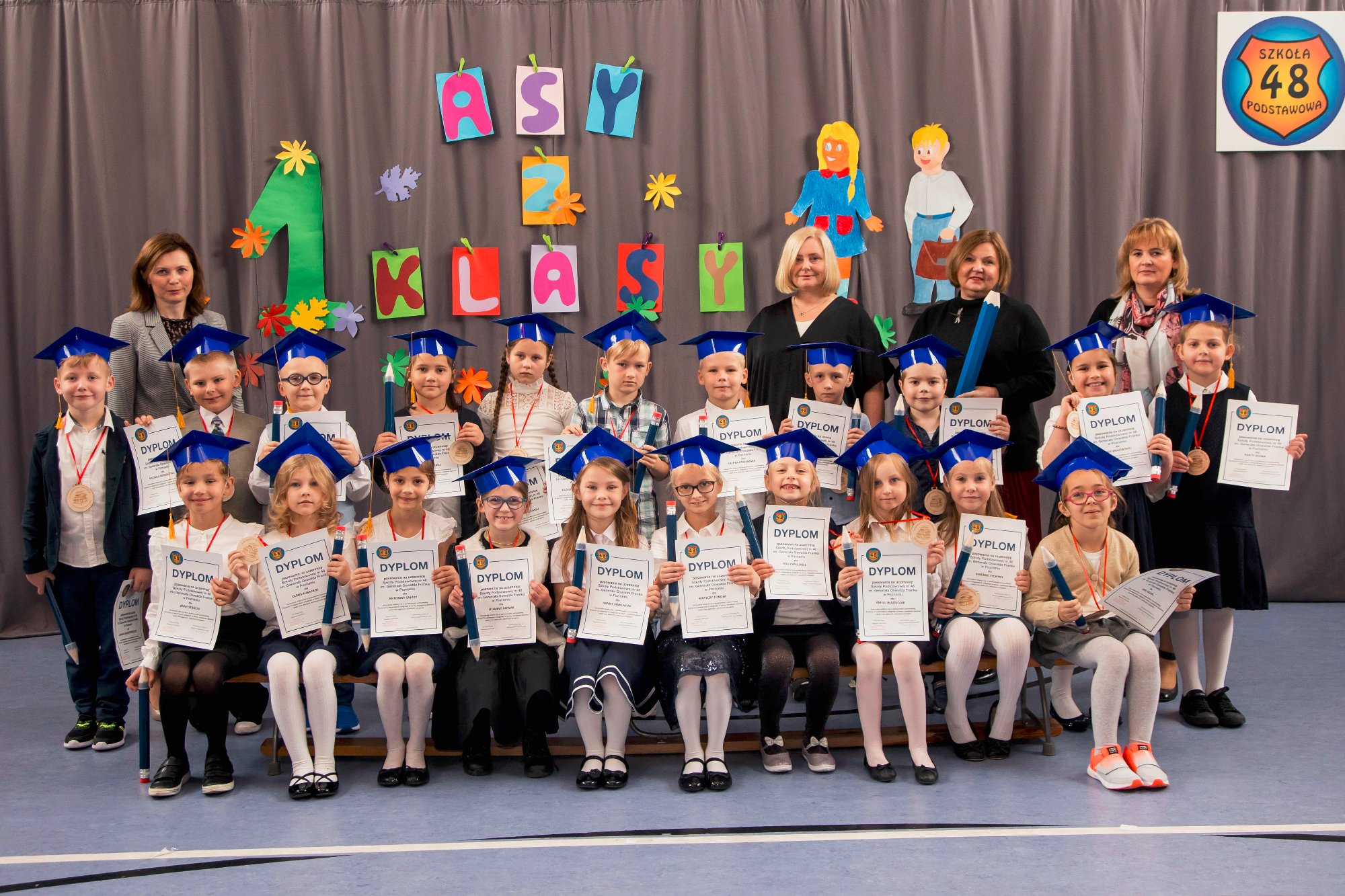 Po ślubowaniu aktu pasowania na ucznia/ uczennicę Szkoły Podstawowej nr 48 im. Generała Oswalda Franka w Poznaniu dokonała Pani Dyrektor Magdalena Stachowiak.
