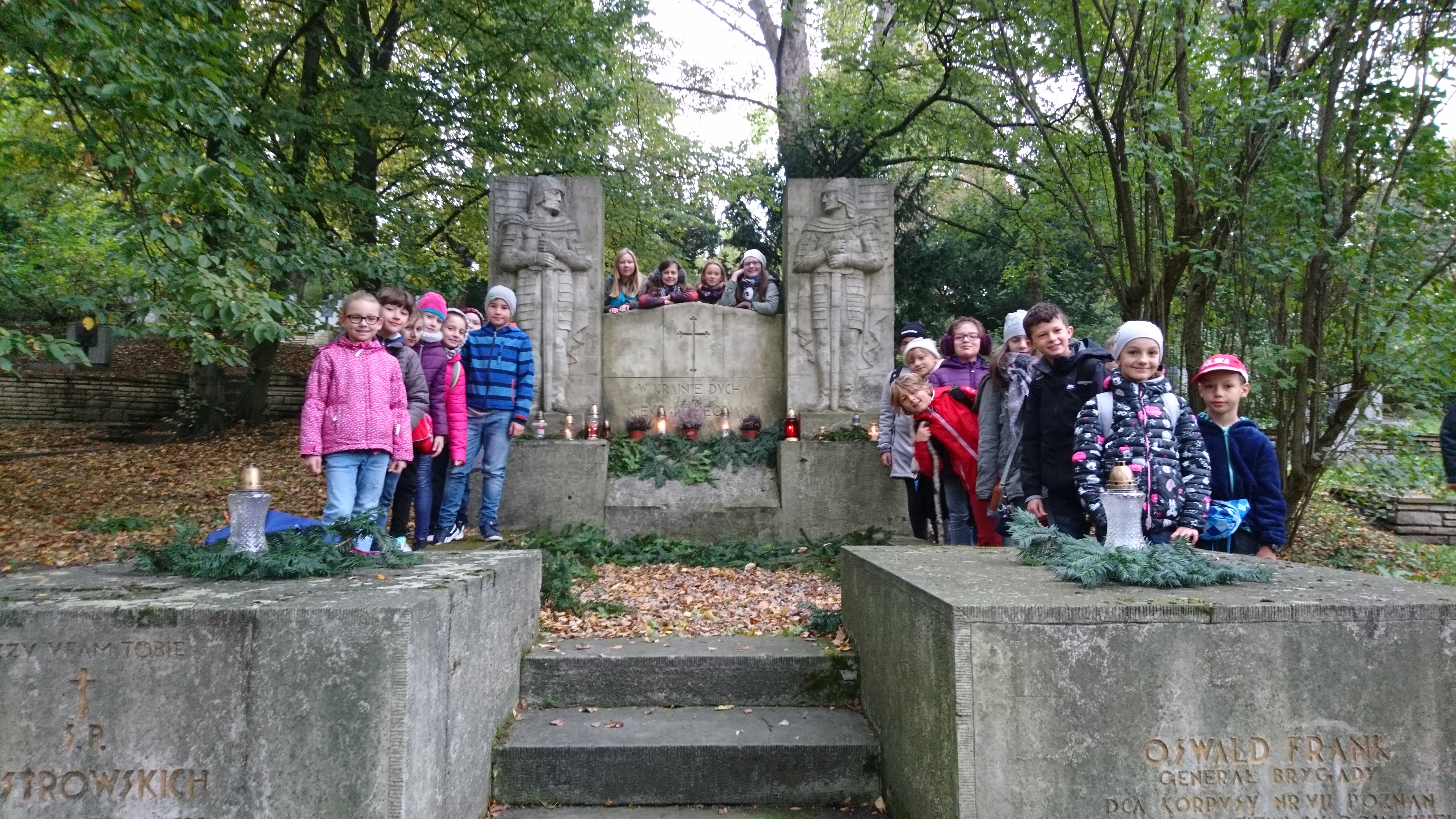 W piątek 13 października 2017 roku uczniowie klas IV b i VII b wraz z wychowawcami oraz opiekunami wybrali się na Cytadelę, aby odwiedzić grób Patrona naszej szkoły Generała Oswalda Franka i jego żony Haliny. Po przybyciu na miejsce uczniowie uporządkowali grób i zapalili znicze na znak pamięci o naszym Patronie.