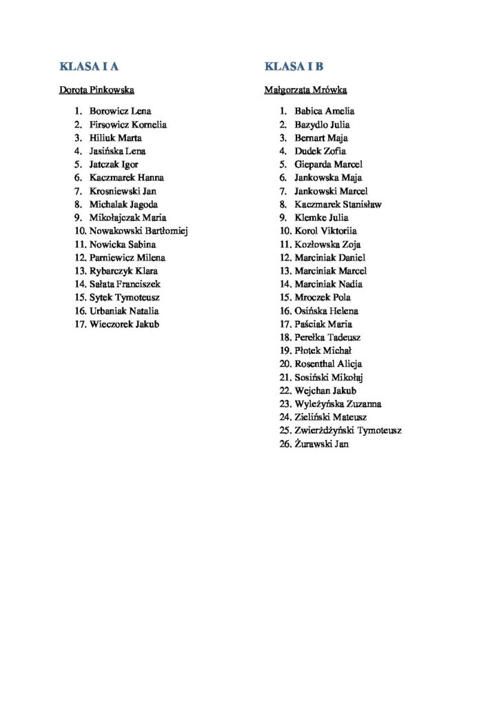 Poniżej przedstawiamy podział klas pierwszych na A i B w roku szkolnym 2020 – 2021