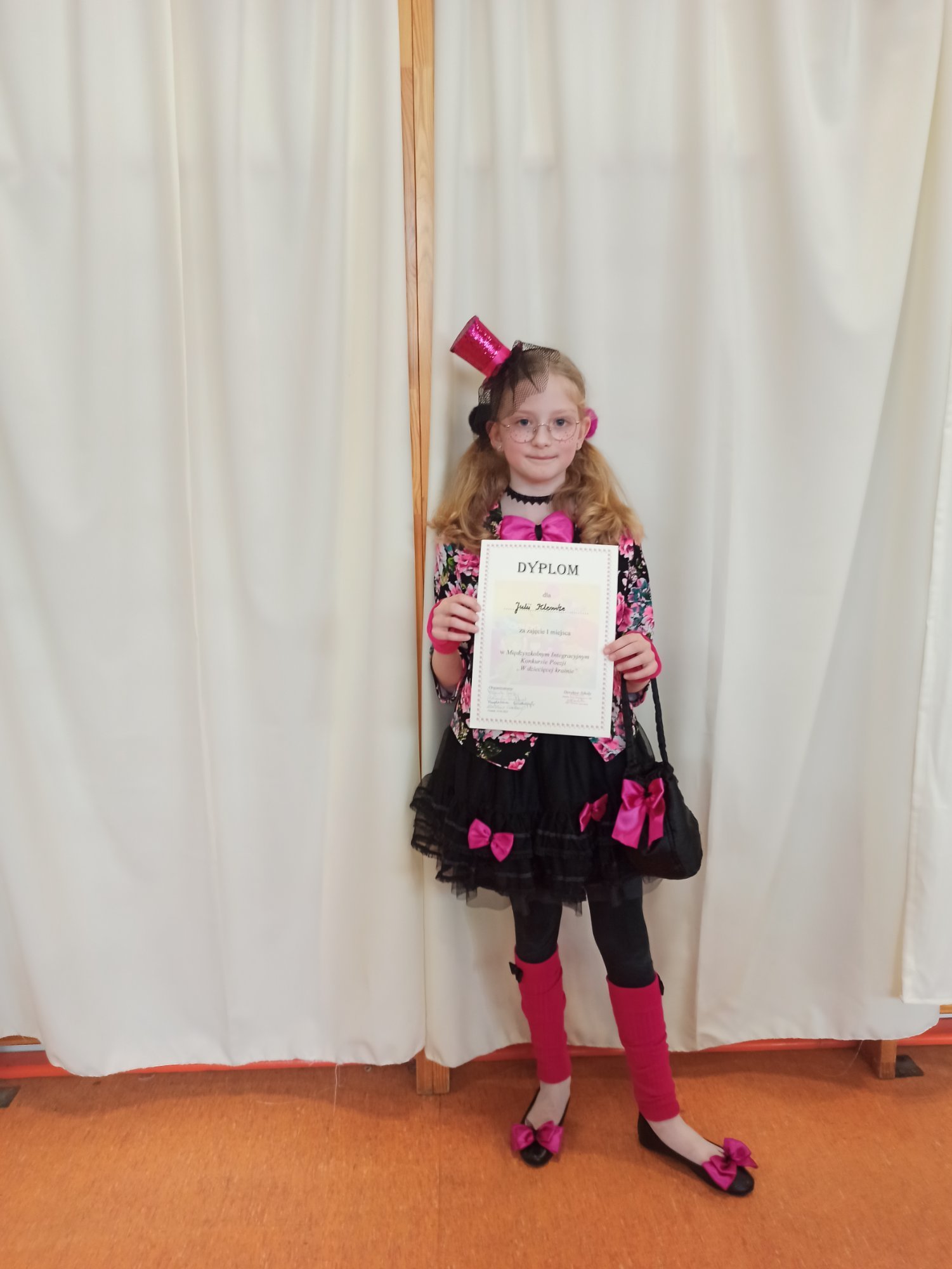 Z przyjemnością informujemy, że uczennica klasy 3b – Julia Klemke – zajęła I miejsce w Międzyszkolnym Integracyjnym Konkursie Poezji „W dziecięcej krainie”, który odbył się 24 marca. Zadaniem uczestników było przedstawienie utworu poezji dziecięcej w formie scenki, dramy lub recytacji. Julka zachwyciła jury i uczestników (szczególnie uczniów szkół średnich) niesamowitą interpretacją fragmentów „Pchły Szachrajki”, dając tym samym popis swoich aktorskich i recytatorskich zdolności. To nie pierwszy taki sukces naszej uczennicy i mamy nadzieję, że nie ostatni!