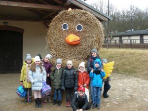 Dnia 27 marca 2018r. uczniowie klasy „0”, 2a i 3c pojechali na wycieczkę do Muzeum Narodowego Rolnictwa i Przemysłu Rolno-Spożywczego w Szreniawie. Celem wycieczki było przybliżenie dzieciom wielkanocnych tradycji i obrzędów.  Z zaciekawieniem oglądaliśmy przedstawienie teatralne pt. „Wielkanocne porządki u baranka” i aktywnie uczestniczyliśmy w warsztatach plastycznych ozdabiając sylwetę zajączka. Największą atrakcją okazało się jednak oglądanie zwierząt w oborze. Woły, kozy, króliki, kurczaki czy świnki wywołały uśmiechy, a czasem nawet zdumienie na twarzach naszych uczniów. Zmęczeni, ale bardzo zadowoleni powróciliśmy do szkoły. Teraz pozostaje nam tylko czekać na święta… 😉 Zapraszamy do galerii:)